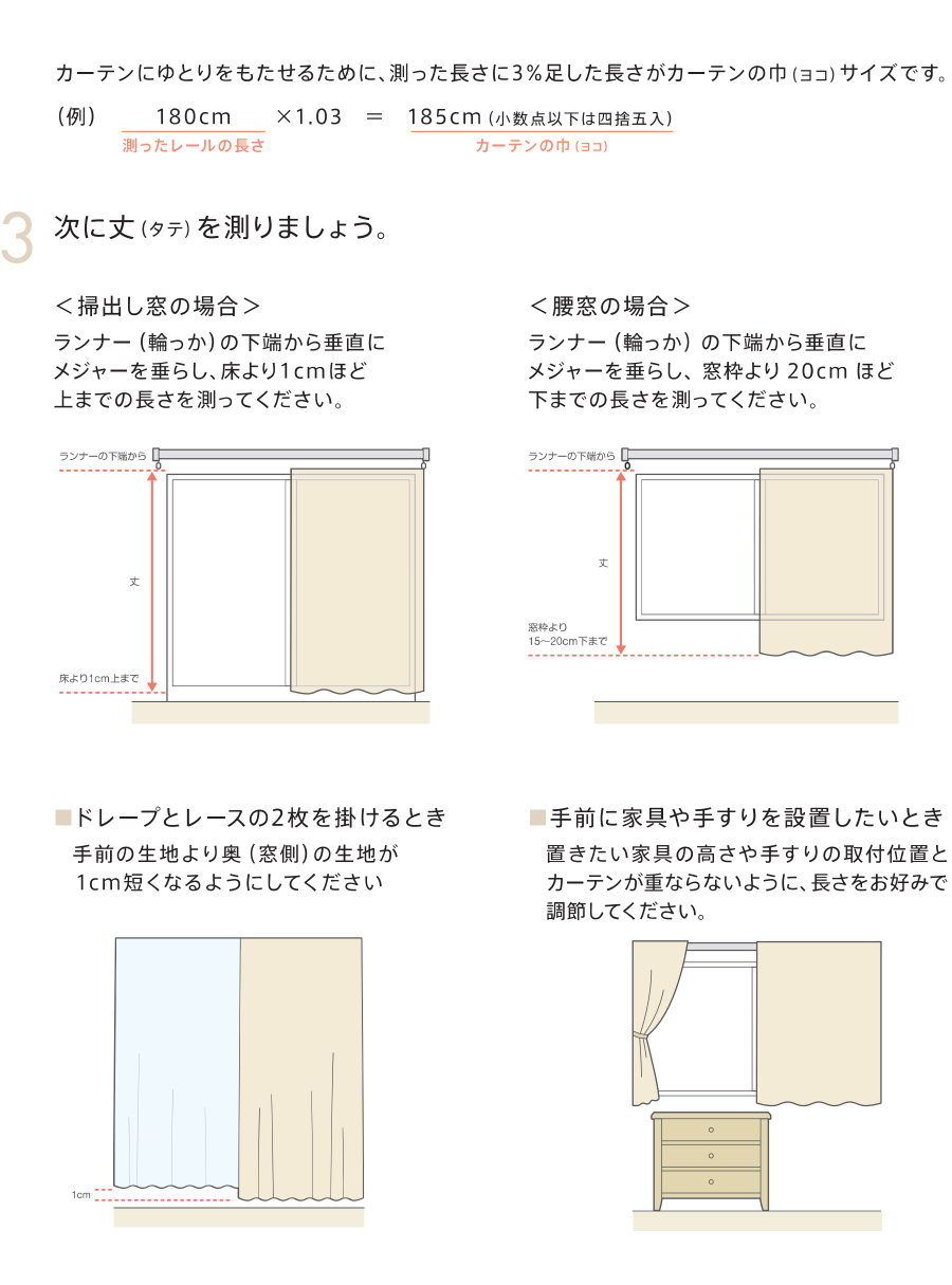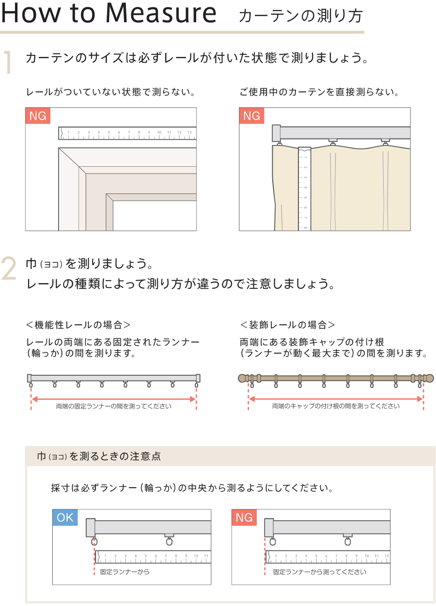 商品ページ下の【カーテンの測り方】を参考に採寸、ご注文ください。