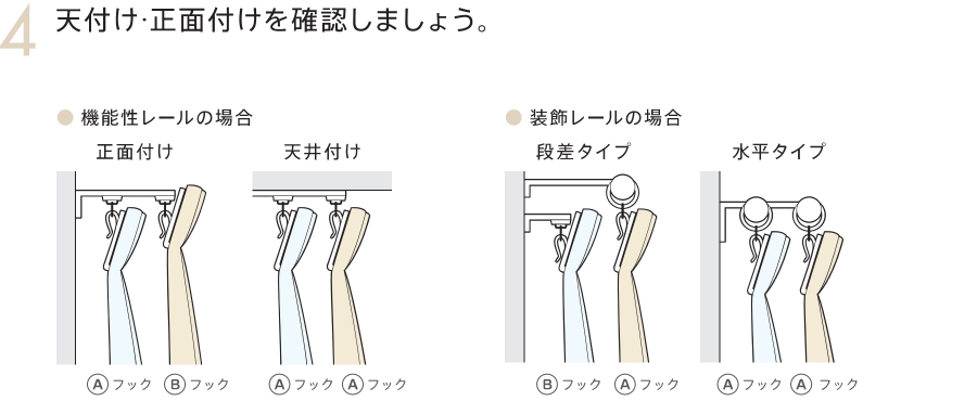3.フックの種類(Aフック・Bフック)と開き方(両開き・片開き)をご指定ください。