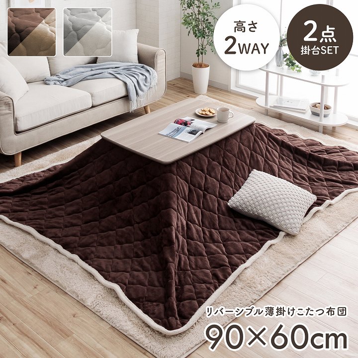 | こたつ掛布団:190×240cm (キルティング加工許容範囲 +5%−3%) こたつ台:90×60×40/65cm |