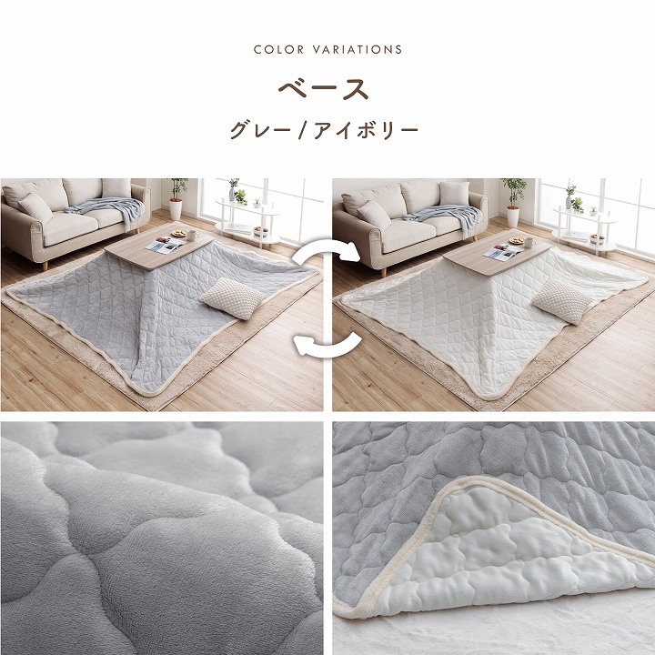 | こたつ掛布団:ベースブラウン/ベージュ、ベースグレー/アイボリー こたつ台:アシュホワイト、ホワイト |