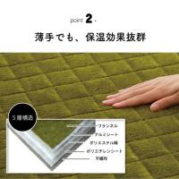 ■ 表地は保温性のあるフランネル生地。ずっと触っていたくなるようなやわらかな肌触りです。 ■ 中材にアルミシート・ポリエチレンシートを使用することで蓄熱・断熱機能があるため、冬の寒い日でも床からの底冷えを軽減します。 ※ 掲載写真は表記サイズと異なる場合がございます。 ※ 画面上のカラーはご使用ブラウザやモニターの設定により、実物とは若干異なる場合がございます。あらかじめご了承の上、ご注文をお願いいたします。 | |