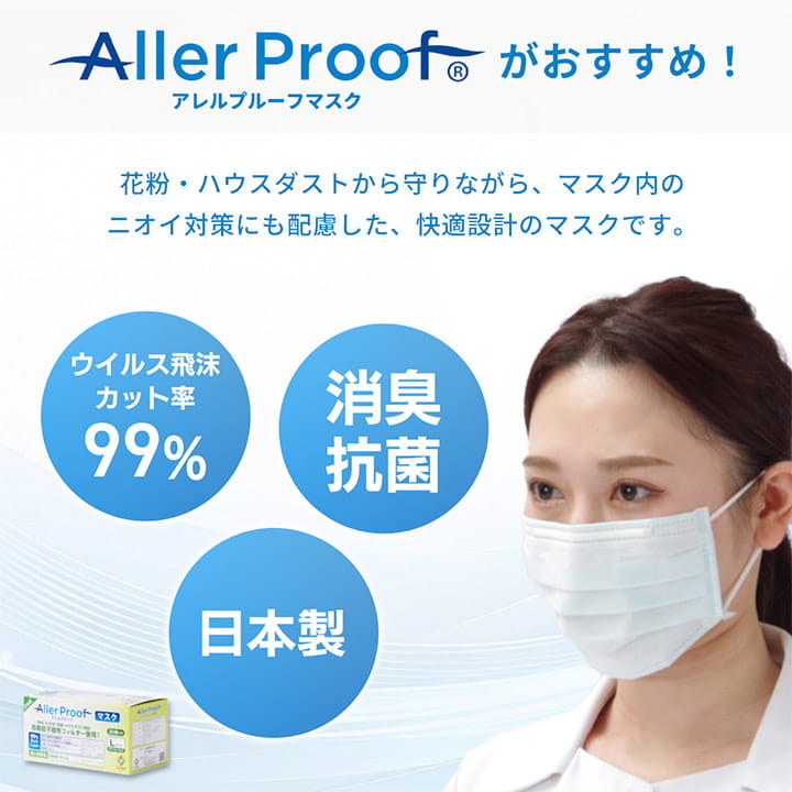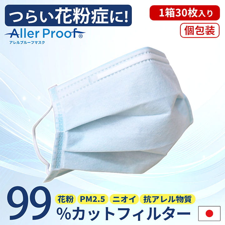 マスク 不織布 日本製 Lサイズ 30枚入 個別包装 花粉対策 口臭ケア アレルキャッチャー アレルプルーフ サージカルマスク 風邪 花粉 ほこり 高機能