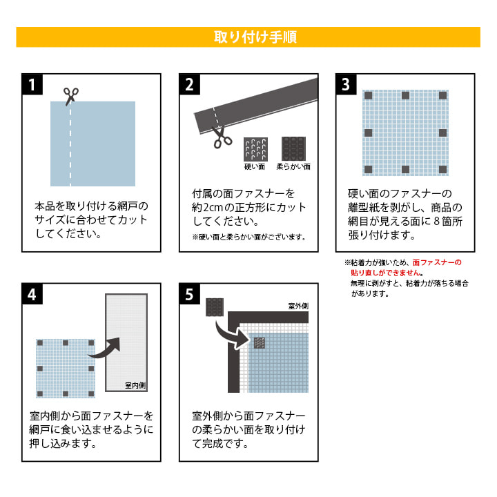 | ■簡単に網戸に取り付ける目隠しシート! ■風を取り込みながら、外からの気になる視線をカット! ■面ファスナー付きで取り付け簡単 ■日差しをカットし省エネ! |