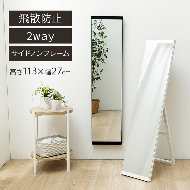 鏡 壁掛け スタンドミラー 姿見鏡 コンパクト ミラー 軽量 飛散防止 LAGUNA -ラグナ- 27×113cm ノンサイドフレーム 2way 全身鏡 新生活