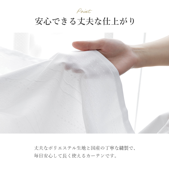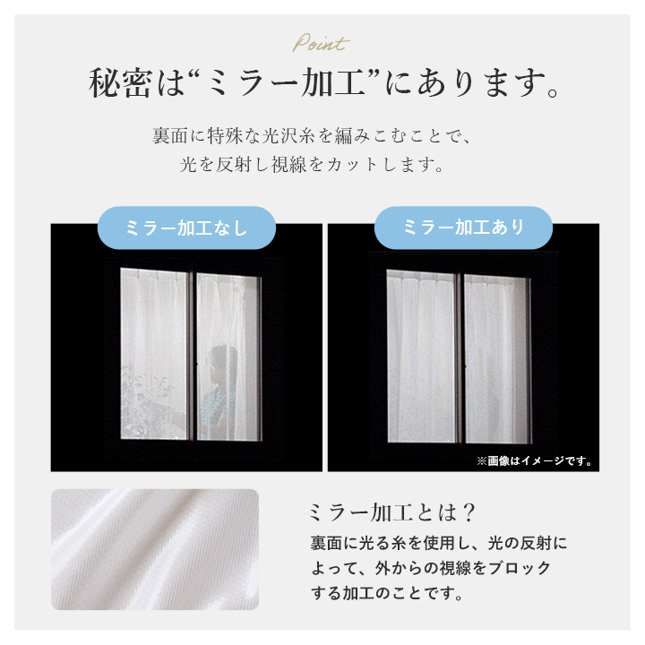 | ・UVカット率90%以上!昼も夜も外から見えにくいミラーレースカーテンです。 ・国内メーカーで縫製された安心の日本製。細部まで丁寧な仕上がりです。 ・日本製の高品質なカーテンをお買い求めやすい価格で販売しております。 ・洗濯機で洗えるのでいつでも清潔にご使用いただけます。 |
