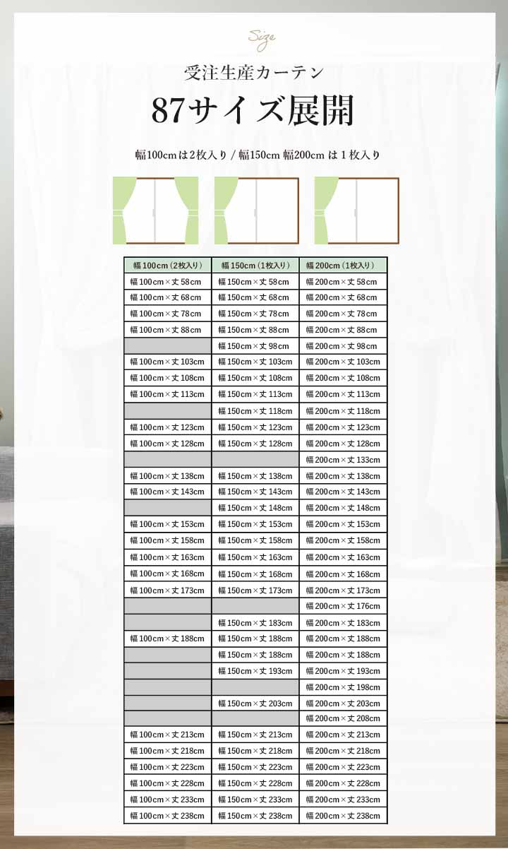 | ・既成サイズ ・幅100cm ・幅150cm ・幅200cm |