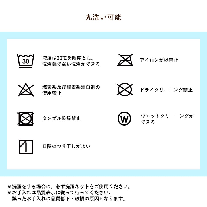 【洗濯表示】液温は30℃を限度とし、洗濯機で弱い洗濯ができる