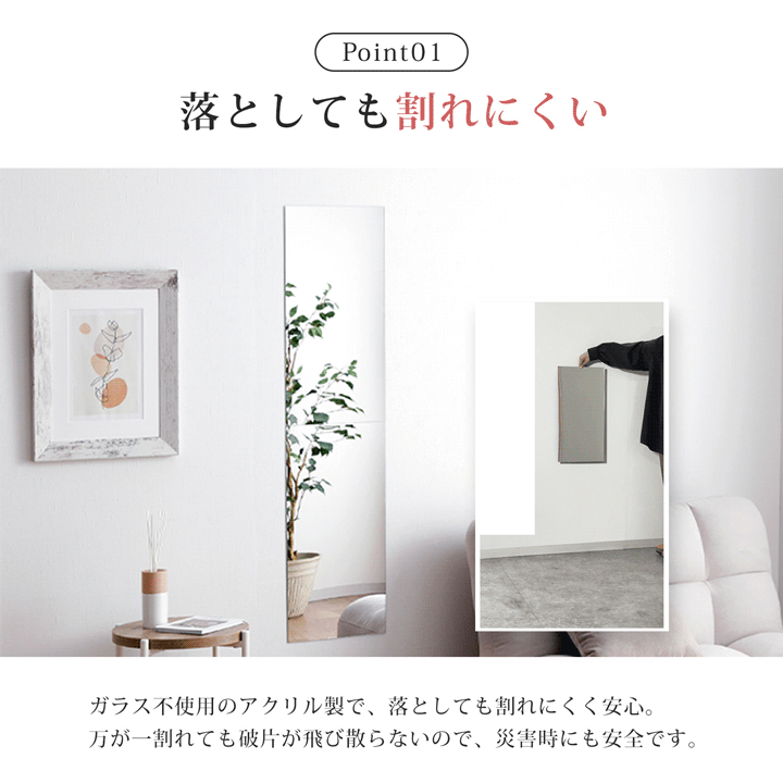 鏡 姿見 ミラー 壁掛け アクリルミラー 割れないミラー 2枚セット アクリル 30×60×0.2cm 全身鏡 ウォールミラー 壁掛け鏡