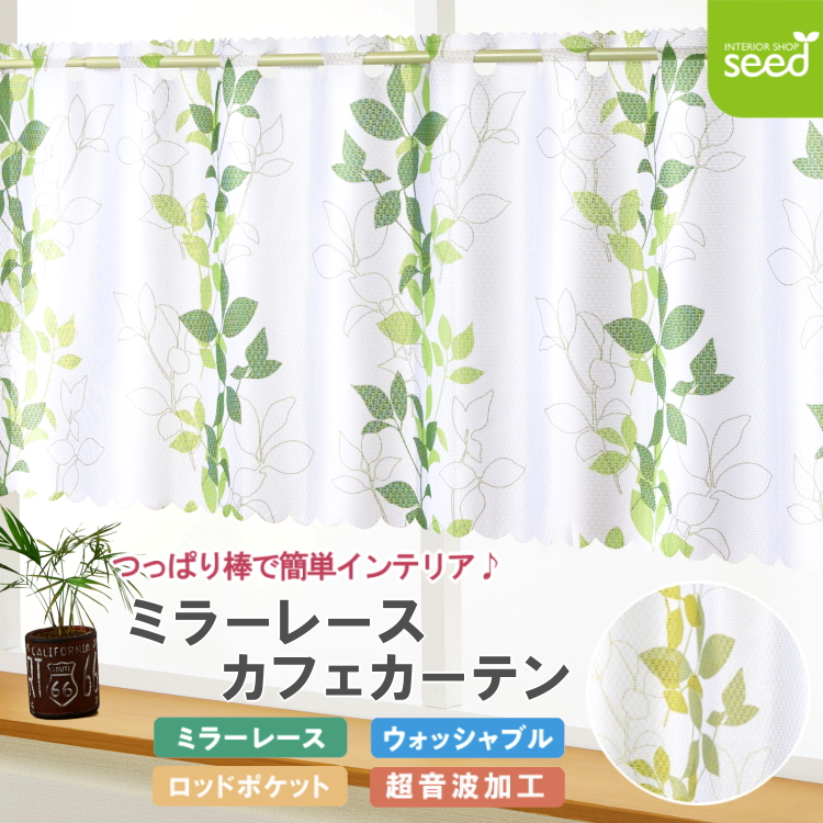 カフェカーテン ミラー レース 145×70 モダンリーフ