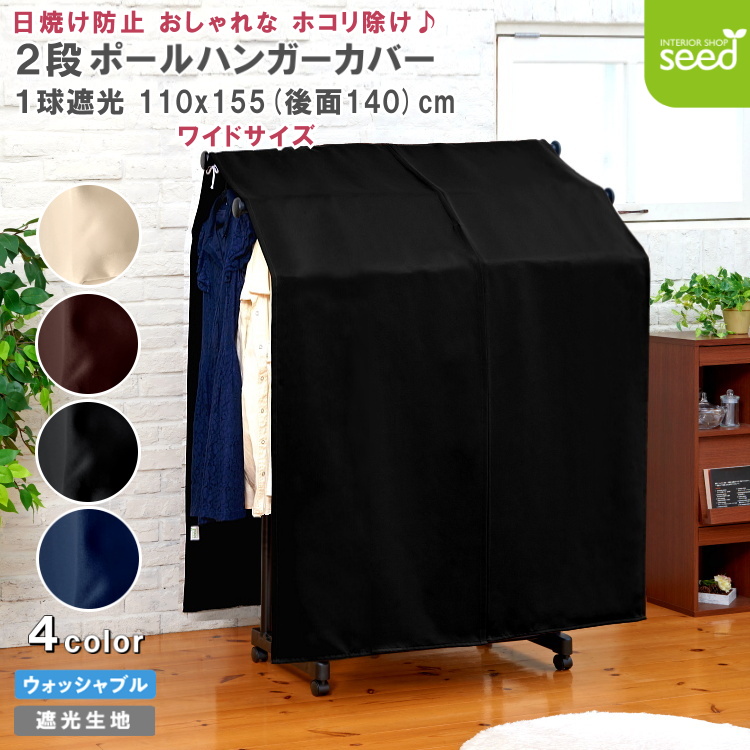 2段 ハンガー ラック カバー ダブル ワイドサイズ 110cm× 丈 155 (140) cm 全4色フルダル 1級遮光 無地 一級遮光 シンプル 模様替え