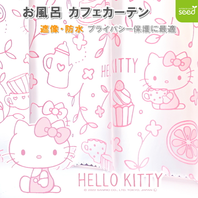 ハローキティ お風呂 カフェ カーテン 140×60cm 遮像 はっ水 防カビ アフタヌーンティー かわいい 浴室 脱衣所 プライバシー保護 サンリオ