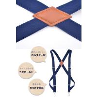メイン素材: ゴム製織物・PUレザー背中でX字に交差してホールドし、サイド2点でズボンを留めるホルスター型サスペンダー。ズボンのベルトループにひっかけて使用するカラビナ留具タイプです。※ベルトループのないズボンにはご使用いただけません。クリップでは留めにくい、厚手のデニムやズボンにおすすめです。【サイズ】幅25mm 長さ125cm(身長160‐180cm向け・男女兼用)【カラー】ブラック / グレー / ネイビー / ワインレッド / ダークブラウン / グレーベージュ /グリーン /ライトブラウン /ライトグレー /ターキーレッド /ホワイト中国製。記載のサイズは実寸と誤差があることもあります。ご了承ください。