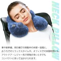 ネックピロー 飛行機 旅行 ポンプ内蔵 膨張 トラベルピロー 簡単 手押し 携帯ポーチ付き 首枕 空気入れ不要 エアークッション 洗濯OK //60N◇ ポンプ式ネック枕