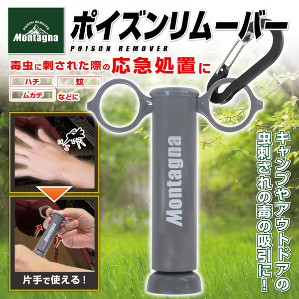 ポイズンリムーバー 蚊 蜂 ムカデ 虫刺され 応急処置 カラビナ付 毒吸引器 キャンプ アウトドア 登山 片手で使える 毒を吸い出す /60N◇ ポイズンリムーバー