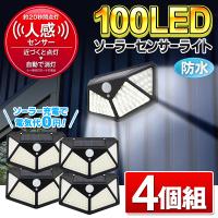 センサーライト 屋外 100LED 防水 ソーラーライト 4個セット 人感センサー 明るい 明暗 ポーチライト 玄関 防犯 外灯 送料無料-60N◇ 100LEDライト×4個