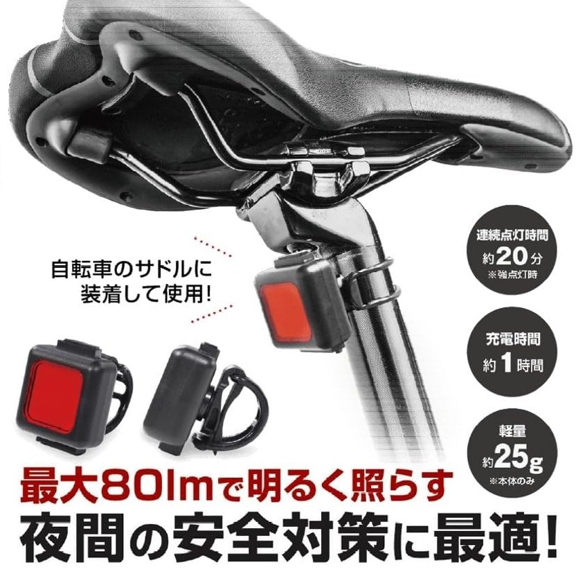 自転車用ライト 充電式 テールライト 高輝度 COB型LED搭載 サイクルライト 工具不要 サドル 赤色 3WAY点灯 防犯 夜間の走行も安全 /60N◇ 充電式テールライト