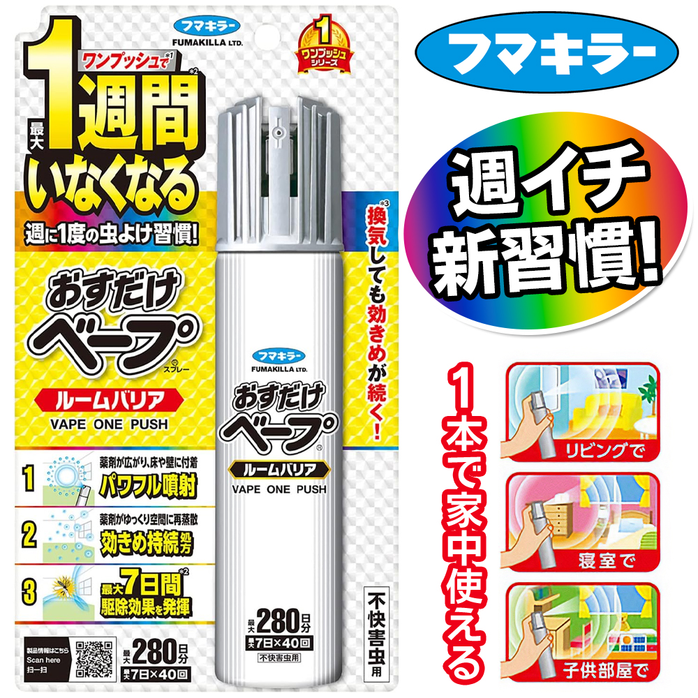 フマキラー おすだけベープ 虫除け ワンプッシュ 蚊よけ 1週間いなくなる 虫よけスプレー 280日分 家中 ルームバリア 不快害虫用 日本製 /60N◇ おすだけベープ