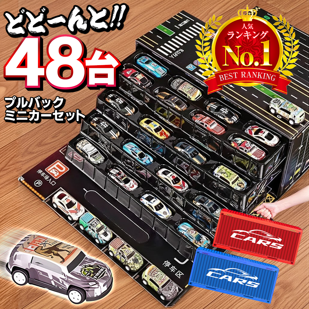 たっぷりミニカー48台!プルバックミニカー!