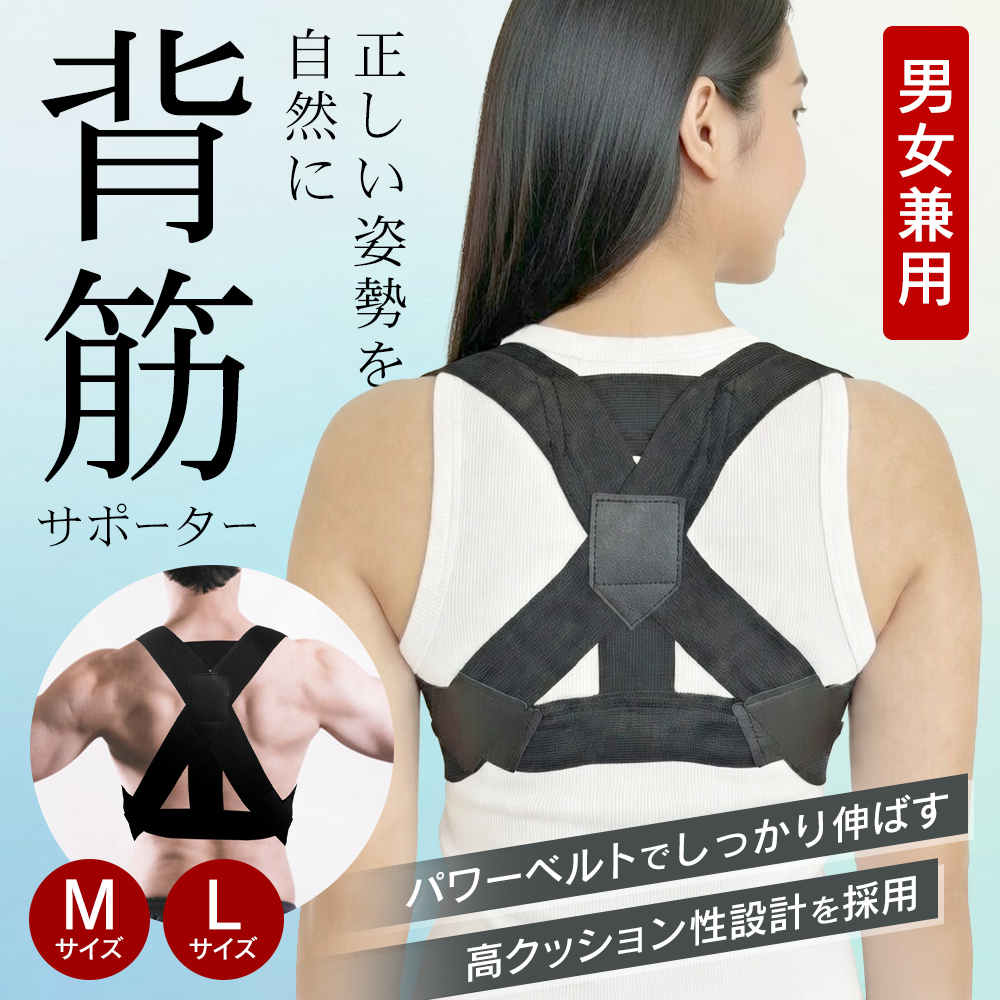 背筋サポーター 男女兼用 M・Lサイズ 姿勢補正 ベルト 薄手 伸縮性 サポーター 補助クロスベルト 美姿勢 猫背矯正 着脱式 健康 //60N◇ 背筋サポーター