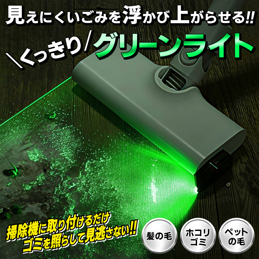 【見えにくいゴミを浮かび上がる】掃除機ヘッド LEDライト 汎用 くっきり グリーン 後付け 掃除機用ライト 紫外線 スティッククリーナー /60N◇ ダストビューLED