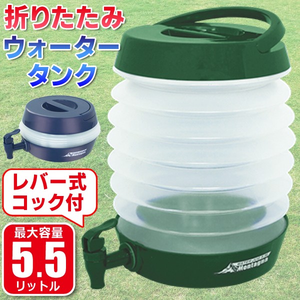 ウォータージャグ 大容量 5.5L 折りたたみ ウォータータンク レバー式 蛇口ノズル 取手付 水タンク 給水 アウトドア 防災 送料無料-60N◇ 蛇腹タンク