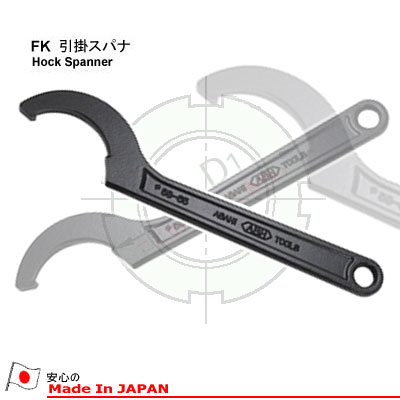 引掛スパナ FK80-85φ 厚み8.5mm 日本製ミーリングチャック用、コレット締付用にもバイクやクルマの調整式ショックのプリロード調整に最適です。適正なサイズをお選びいただければ、大切なアルミタイプのショックに傷をつけることはありせん。使い方車高調整レンチを各ロックナットリングの切り欠きに合わせる。ロアシートを固定し、シートロックを回して推奨トルクにて締め付ける。その他ロックナットリング(リング状のナット;ベアリングナット)の締結に必要です。特徴●熱間鍛造品のため、車載のプレス品とは比較にならないほど強度、耐久性があります ●カチオン塗装を施しているため、屋外使用でもサビにくくなっております ●材質はクロムバナジウム鋼で完全熱処理済み●ナット(調整ねじ)の外径(直径)に合ったサイズをご使用ください。ご購入いただいたお客さまの評価:◎コメント:車高調整リング用にと探していたものがみつかってうれしかったです●