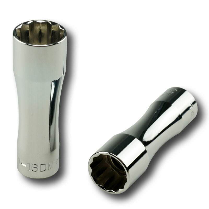9.5mm (3/8")スーパースリムプラグソケット 12-Point Size: 9/16"-14mm ■プラグホールの小さいエンジンの整備に最適です。十二角タイプのプラグにもお使いいただけます。強力なマグネットキャッチ式 注意/CAUTION スパークプラグ専用のソケットです。外径が特に小さくなっておりますので、オーバートルクには十分ご注意ください。インパクトレンチ等の動力工具で使用しないでください。