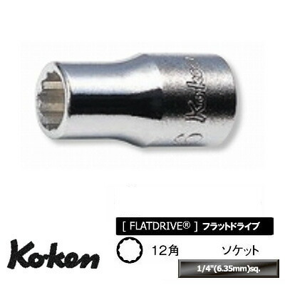 ボルトやナットをしっかりホールドし、高いトルクを確実に伝達する、Ko-ken(コーケン)山下工業研究所製(日本製)のソケットです。フラットドライブ・・・ボルト/ナットに接する開口部はもちろんのこと、差込側の四角駆動部にも角を傷めずハイトルクを確実に伝える面接触のフラットドライブを国内で最初に採用。ボルト/ナットの角を傷めないのはもちろん、ソケットにかかる応力を分散させ、耐荷重性のアップも達成しています