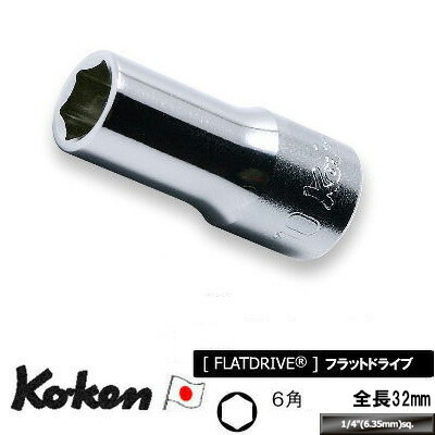 ボルトやナットをしっかりホールドし、高いトルクを確実に伝達する、Ko-ken(コーケン)山下工業研究所製(日本製)のソケットです。セミロングソケットは、長すぎず、短すぎず、スタンダードとロング(ディープ)の中間的なサイズで、使い勝手に優れています。フラットドライブ・・・ボルト/ナットに接する開口部はもちろんのこと、差込側の四角駆動部にも角を傷めずハイトルクを確実に伝える面接触のフラットドライブを国内で最初に採用。ボルト/ナットの角を傷めないのはもちろん、ソケットにかかる応力を分散させ、耐荷重性のアップも達成しています