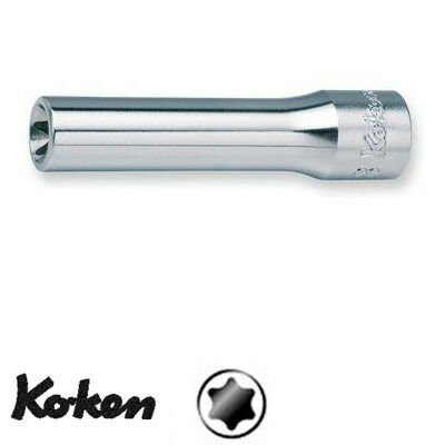 ボルトやナットをしっかりホールドし、高いトルクを確実に伝達する、Ko-ken(コーケン)山下工業研究所製(日本製)のロングソケットです。TORXの中でもE型と呼ばれている、ボルトの頭が凸形状のタイプです。そのためディープソケットは凹星型になっています。【2325E10】