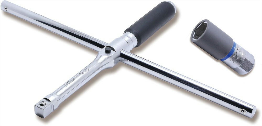 特徴 好評のフリーターンクロスレンチの機能を更に向上させました。 グリップを改良してよりスムーズな回転を実現。 さらにハンドルバーのロック機能を搭載。固定ハンドルのように、常時センター位置がキープでき、安全にストレスなくタイヤ交換作業が可能に。 ソケットは、ホイールへの接触時にキズ付を軽減する樹脂製ホイールプロテクターとナット頂点を保護するストッパーを搭載。 作業時のホイールのキズ付を防止する樹脂製ホイールプロテクター(脱着可能)を標準装備。またZ-EALシリーズの特徴である新機構ボールディンプル(えくぼ)採用により、レンチ接続箇所のガタつきを低減、フィット感と高いトルク伝達性能を実現しています。 差込:1/2 (12.7mm) 全長:264×350mm(ハンドル装着時) 不織布製収納袋付属 1/2"(12.7mm)sq. Free Turn Cross Wrench For Wheel Nut