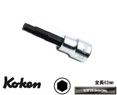 Ko-ken 3010M-62-9 3/8"差込 ヘックスビットソケット 全長62mm 9mm コーケン/山下工研