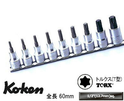 4025.60-T20 T25 T27 T30 T40 T45 T50 T55 T60 高いねじり強度、耐磨耗性と耐久性を備える、Ko-ken(コーケン)山下工業研究所製(日本製)のビットソケットセットです。六角穴付ボルト・止めねじの着脱用。小さなサイズは、六角部の根元を太くして剛性を高めています。また丸穴ではなく六角穴に圧入して耐久性を高めています。トルクスの基本的形状は6つの耳たぶ曲線で構成されています。T形(サイズはT1からT100以上)と呼ばれている、穴状(くぼみ)のあるTORXネジ用のレンチです。ヘックスローブとも呼ばれる。【RS4025-9L60】