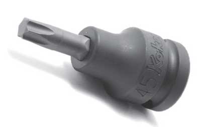 高いねじり強度、耐磨耗性と耐久性を備える、Ko-ken(コーケン)山下工業研究所製(日本製)のトルクスビットソケットです。トルクスの基本的形状は6つの耳たぶ曲線で構成されています。T形(サイズはT1からT100以上)と呼ばれている、穴状(くぼみ)のあるTORXネジ用のレンチです。ヘックスローブとも呼ばれる。一体型からビット部圧入タイプに変更されました。ビット部分に専用の高強度材を使用する事により、耐久性が向上しました。Cリング(Oリング・ピン)は装着していません 別売になります。【14026.60T40】