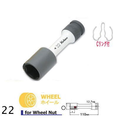 在庫数2 Ko-ken 14145PM-110-22 1/2"差込 ホイールナット用 薄肉 インパクトソケット 全長110mm 22mm Cリング付属 コーケン/山下工研