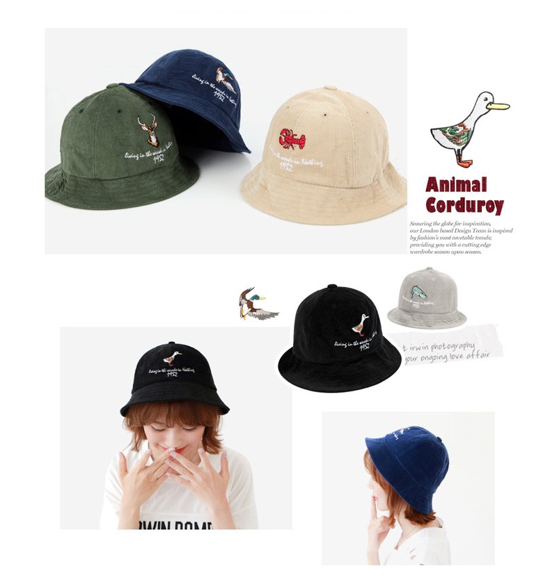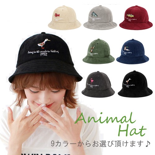 アニマルハット ANIMAL 動物 可愛い コーデュロイ オシャレ 7色 HAT レッド ブラック ネイビー カーキ ベージュ 灰色 刺繍帽子グレー