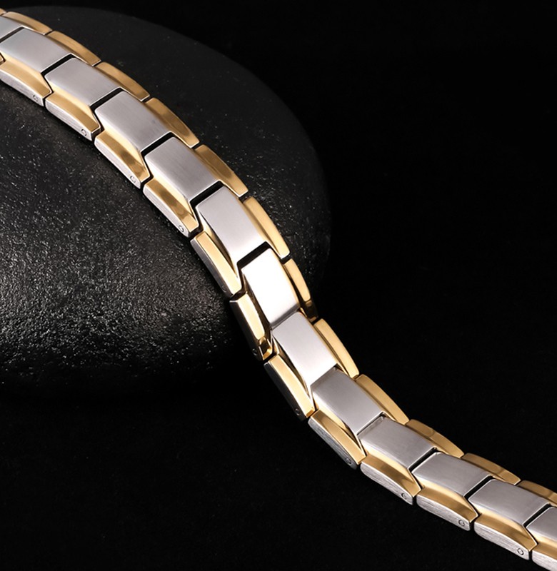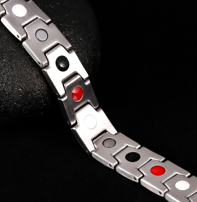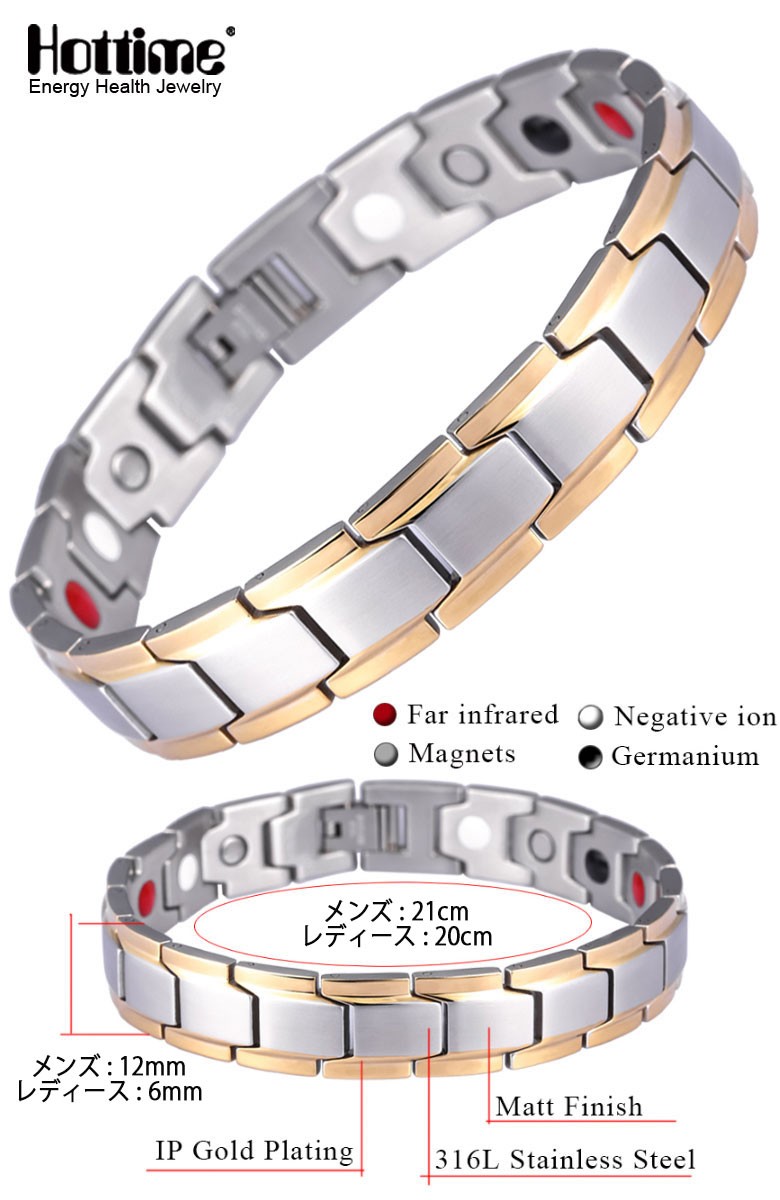 | 商品説明 | クールなデザインでどんなファッションにもマッチするデザイン。 アクセサリの様なファッション感覚でご使用いただけます。 人間の身体にはごく微弱な電気が流れており、プラスとマイナスの電気のバランスがくれると体調不調になると言われています。 ブレスレット内側の磁気が肌に触れる事で電子の移動が生じ、この事が身体の生体電流を整える作用となり、様々な体調不調に働きかけます。 ▼【ゲルマニウム】 人間には生体電流という微弱な電流が流れています。 ゲルマニウムは32℃になると電気を通す導体となります。 導体となったゲルマニウムは、電気を帯びた物質と融合する性質があり、相手がプラスの電流の場合はマイナス、相手がマイナスの場合はプラスの働きをします。 肩こりや健康によいとされています。 |