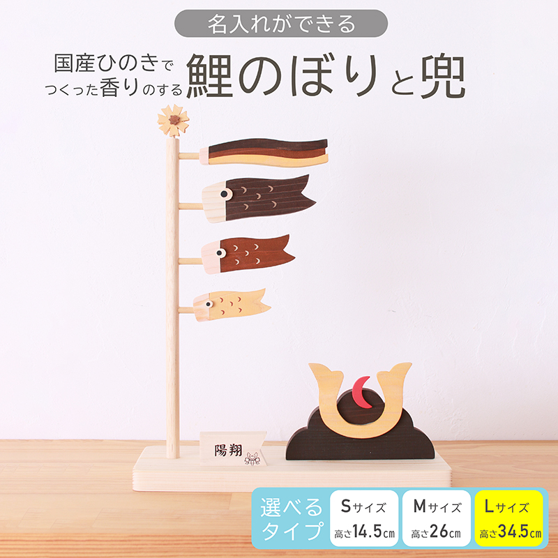 【 名入れ ができる】 木製 ミニ 鯉のぼりセット 【Lサイズ・ナチュラル】 兜 こいのぼり 室内用 玄関 小さい 置物 コンパクト パステル かわいい