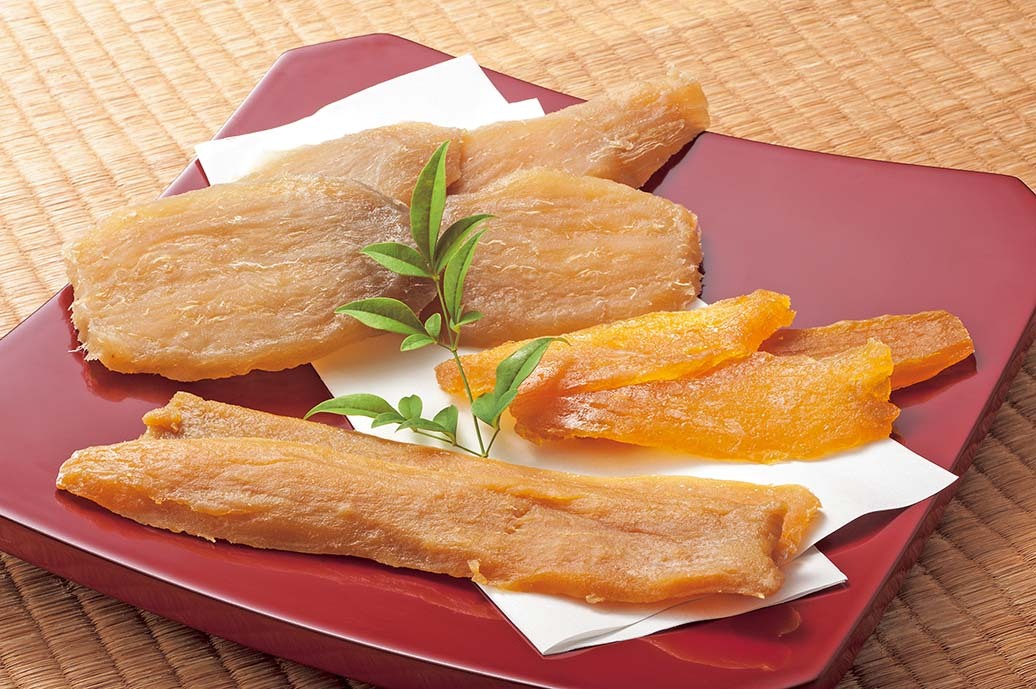 昔ながらの素朴な甘さが魅力の海風ほしいも、明るい外観と甘みの強いべにはるか、独特のコクがあるいずみ、さっぱりとした後味のシルクスイートが一度に味わえます。