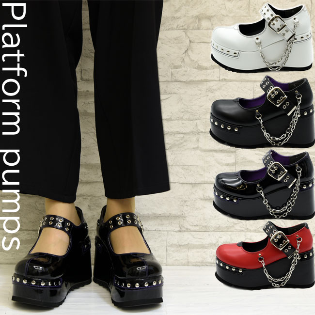 厚底パンプス カジュアルシューズ ブラック 黒 ホワイト 白 レッド 赤