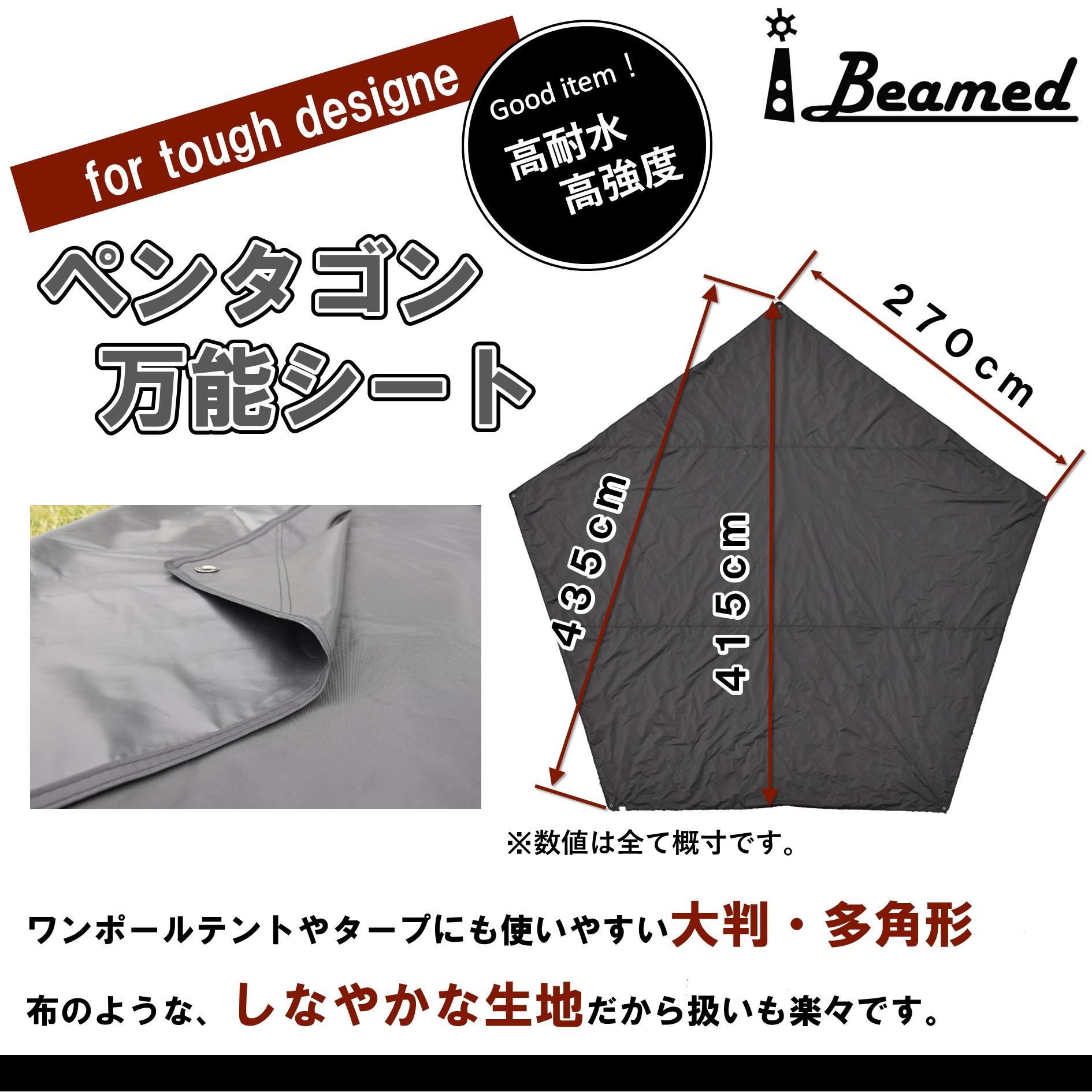 iBeamed 5角形 グランドシート ペンタゴンタープ キャンプ (1辺270cm) 黒