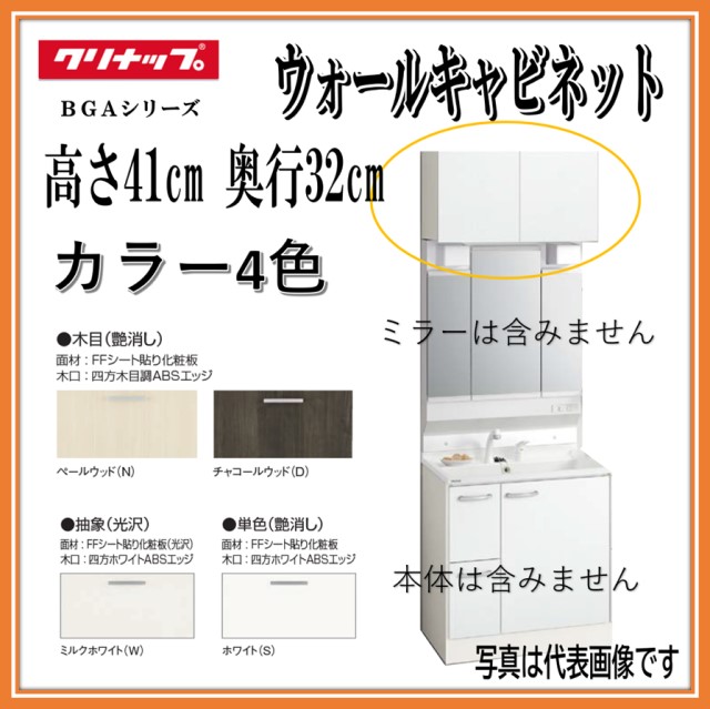 【吊り戸棚 ウォールキャビネットのみ】W600【扉:スムースホワイト(EQT)】クリナップ 洗面化粧台 BGAシリーズ GAWH60(※)