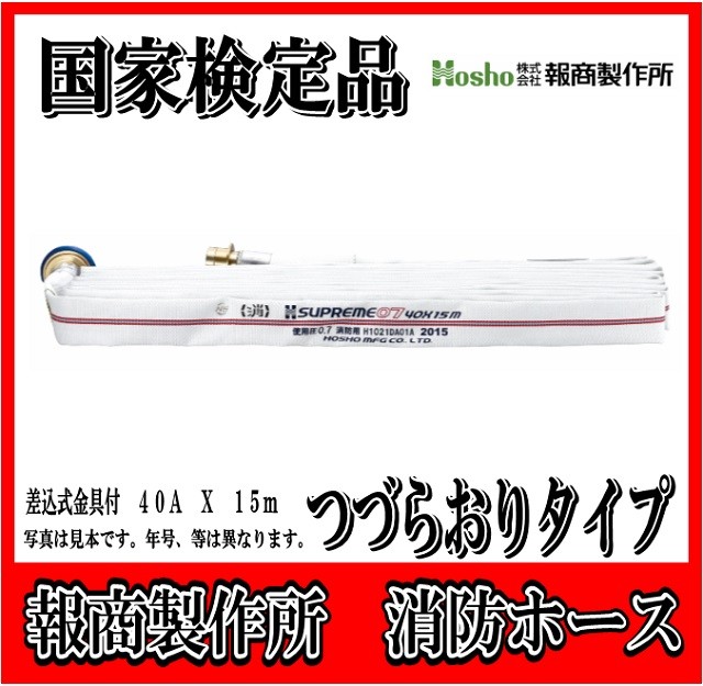【国家検定品 2026年度製】報商製作所 40A X 15m 消防 消火 ホース つづら折り つづらおり(0.7MPa) 屋内消火栓用【発注数量5本単位で購入】