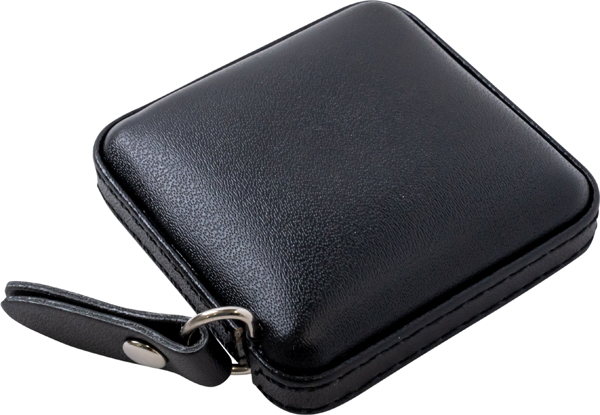 高級感のあるレザー調生地を使用したコンパクトメジャー。携帯しやすく、鞄に入れておけばお買い物時に重宝します。