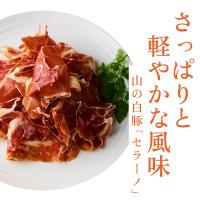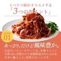 | 原材料 | セラーノ豚肉(スペイン産)、食塩、砂糖/クエン酸Na、発色剤(硝酸K、亜硝酸Na) |