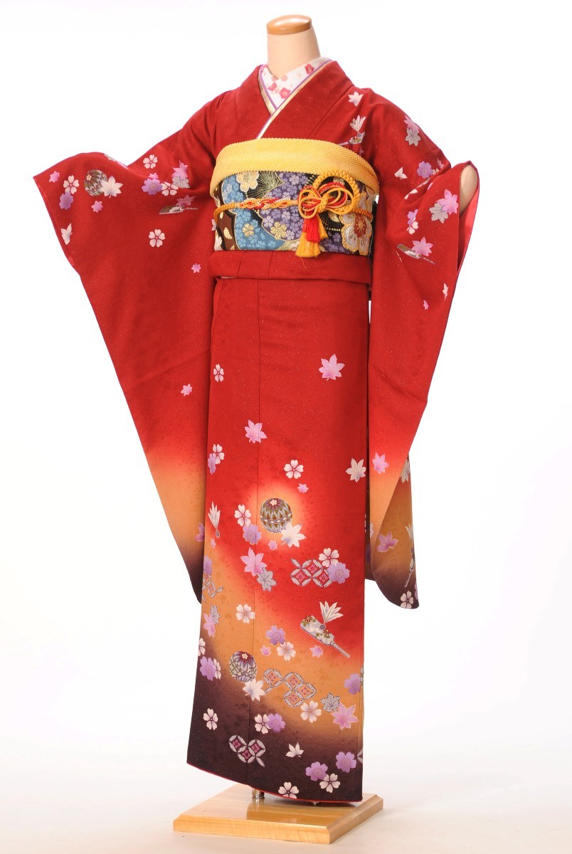 【おためしレンタル価格】振袖レンタルフルセット(2月〜12月上旬)8AC156[振袖][レンタル][結納][卒業式][結婚式][貸衣装][振袖レンタル][着物レンタル][赤地][手毬・羽子板・桜][147cm〜163cm位まで]足袋プレゼント★往復送料無料★