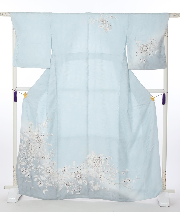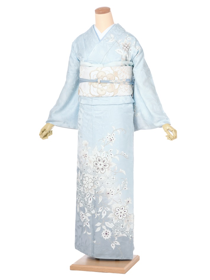 訪問着 レンタル フルセット レンタル訪問着 着物レンタル レンタル着物 正絹 水色 花唐草 教会 チャペルウェディング 150cm〜170cm位まで 足袋プレゼント 送料無料