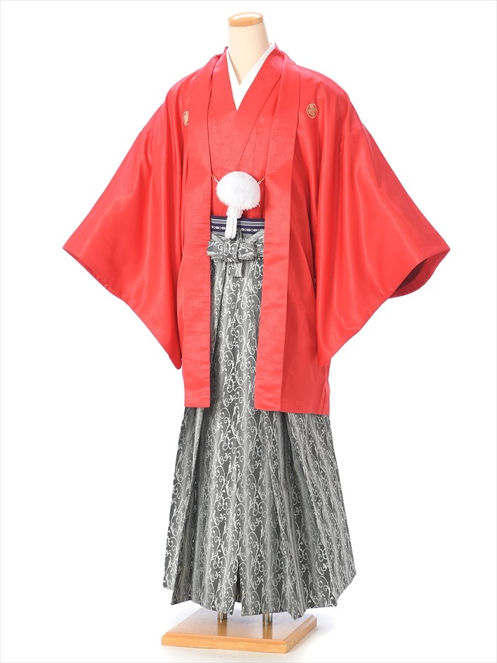 紋付袴 レンタル8AF15 紋付き 羽織袴レンタル 男性 紳士 着物 結婚式 卒業式 男袴 貸衣裳 168cm〜172cm位まで 赤 唐草袴 足袋プレゼント 往復送料無料