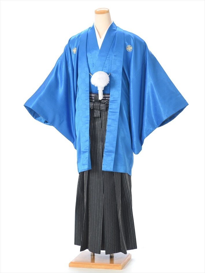 紋付袴 レンタル8AF20 紋付き 羽織袴レンタル 男性 紳士 男 着物 結婚式 卒業式 男袴 貸衣装 158cm〜162cm位まで ブルー 黒縞袴 足袋プレゼント 往復送料無料