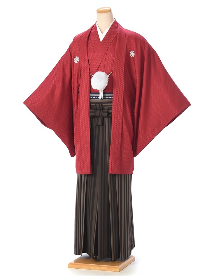 紋付袴 レンタル8AF28 紋付き 羽織袴レンタル 男性 紳士 着物 結婚式 卒業式 男袴 貸衣装 168cm〜172cm位まで 赤 ブラウン袴 足袋プレゼント 往復送料無料